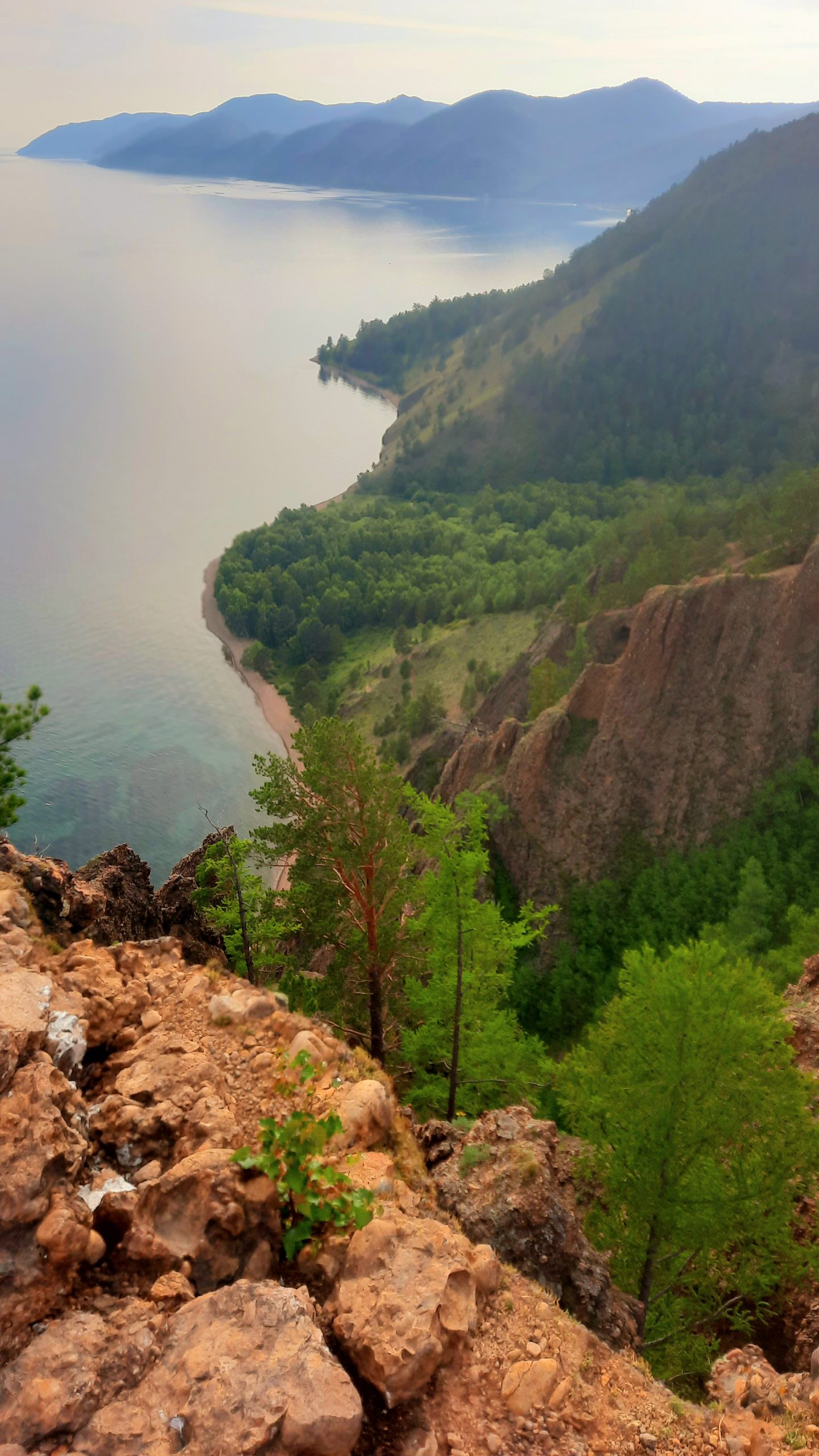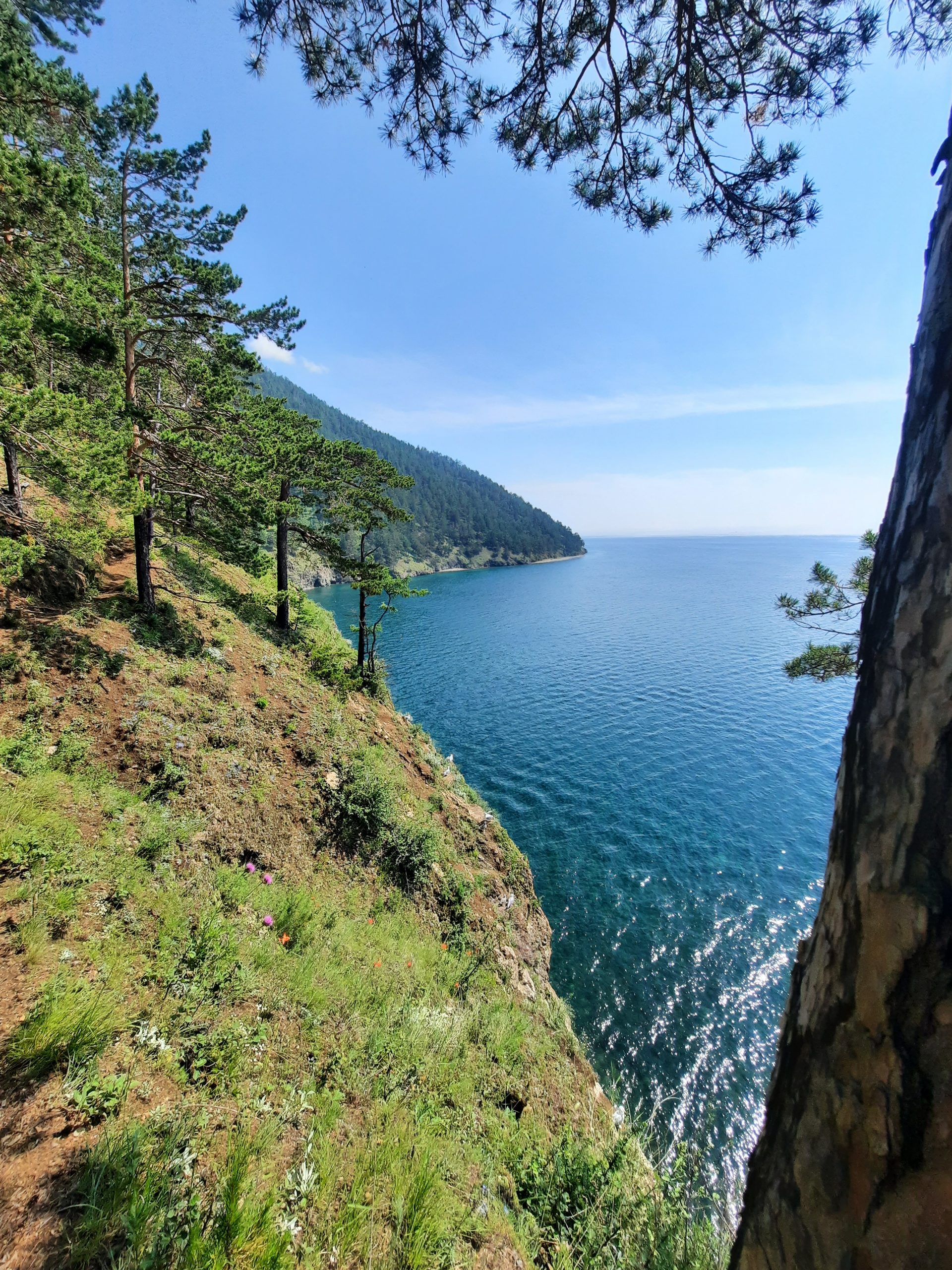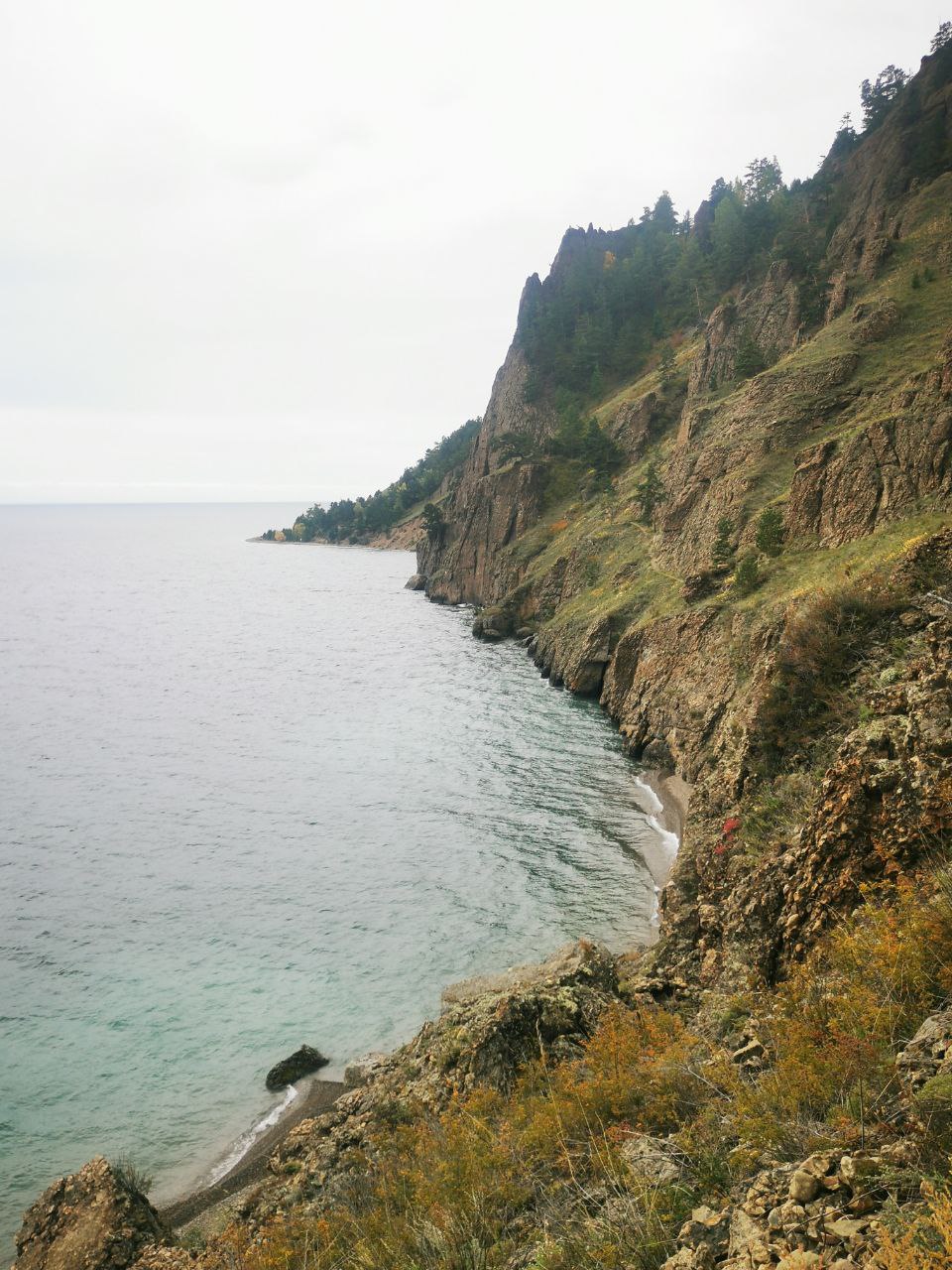 С этой точки открывается великолепный вид на мыс Кадильный, один из самых живописных участков Большой Байкальской тропы.